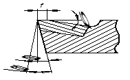 Однак таке розміщення пластинки на різці не може бути прийнято, так як знижується міцність конструкції із-за зменшення відстані від опори до пластинки; виникають значні внутрішні навантаження в пластині виду напайки її в закритий паз. Відстань від площини до пластинки різця рекомендується приймати не менше 2/3 висоти державки, а кут врізання пластинки твердого сплаву – близько 12-18˚. З точки зору зменшення трудоємкості заточки кут врізання пластини повинен бути більше переднього кута. У цьому випадку поверхню заточують по найбільшій площадці, яка доторкається до ріжучої кромки, що призводить до значному спрощенні розгляданої операції.