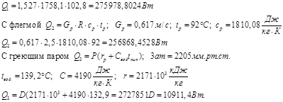 Количество тепла для подогрева исходной смеси определяется в Вт