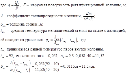 Уравнение теплового баланса дефлегматора:
