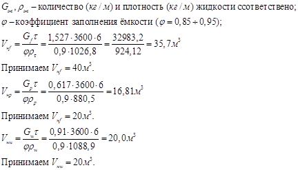 Расчёт емкостей для исходного дистиллята и кубовой жидкости ведём из условий шестичасовой (сменной) работы ректификационной установки, т.е. τ