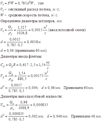 Диаметр штуцеров определим из основного уравнения расхода: