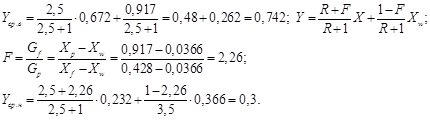 Для расчёта материальных потоков составляем уравнения материального баланса для всего количества смеси (3.1) и летучего компонента (3.7):