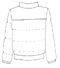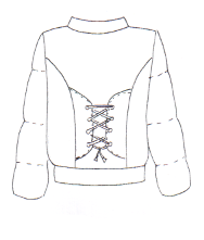 Спинка с рельефными фигурными швами из проймы до низа. В рельефы вставлены фигурные планки с блочками, в которых продёрнут шнур.