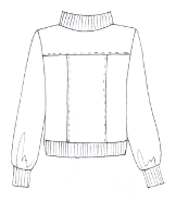 Полочки с рельефными фигурными швами от проймы до низа изделия. Карманы в рельефных швах с притачной листочкой.