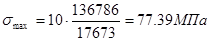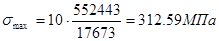 - нормальные напряжения в таблице эквивалентного бруса в графах 10 и11 определяем в связях корпуса по формулам: