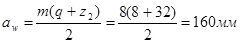Принимаем по ГОСТ 2144-76 стандартные значения m=8 и q=8, тогда межосевое расстояние будет равно