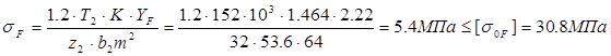 При этом расчетное напряжение ниже допускаемого на 14%, что считается удовлетворительным.