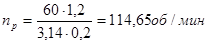 2. Найдем угловую скорость и число оборотов в мин барабана