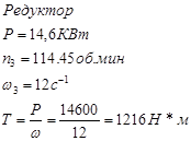 =14,6 КВт принимаем сечение клинового ремня Б. Вращающий момент: