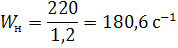 розрахункова частота обертання ;