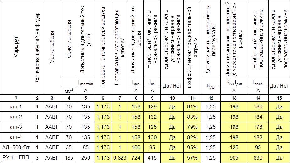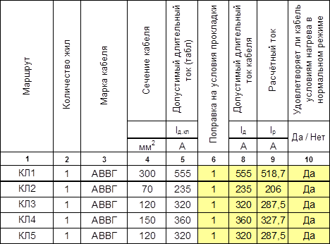 5.3 Выбор кабельных линий по нагреву длительно допустимым током