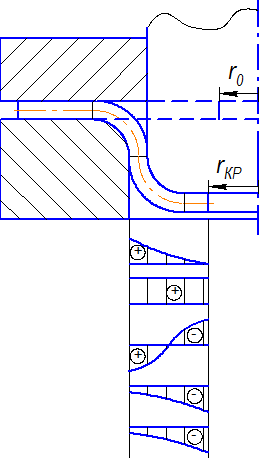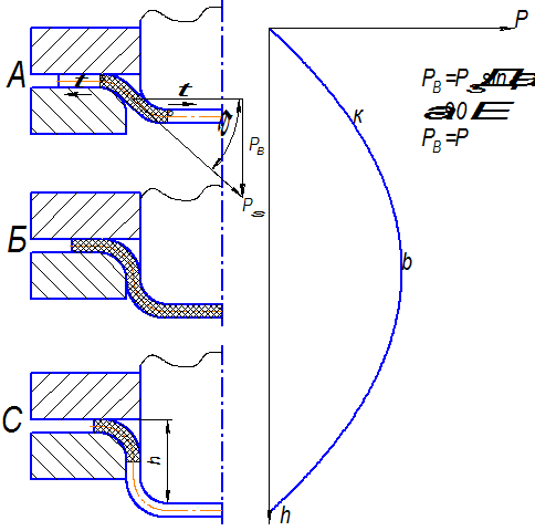 bc – участок радиусного скругления. Схема – пластическая, то есть условие деформирования в пластическом состоянии. НДС – как при вытяжке.