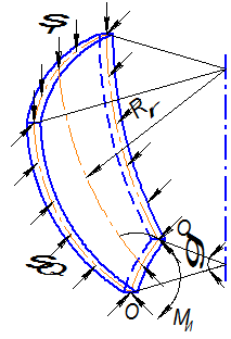 Тангенциальная деформация находится из условия равенства длин образующих.