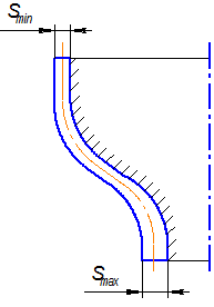 Рассматривая схему НДС определили, что цилиндрическая часть заготовки деформировалась упруго, поэтому толщина заготовки и диаметр сечения соответствует толщине и диаметру сечения детали.