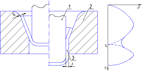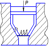 Момент внутреннего сопротивления пытается отвести данную часть заготовки от торца заготовки. Между пуансоном и заготовкой образуется прогиб. Это условие учитывается при определенном напряжении, так как отсутствует трение заготовки по инструменту. Это происходит в том случае, если снизу нет подпора.