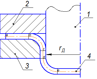 Рассмотрим процесс отбортовки плоской заготовки в осесимметричном штампе с прижимом. Условно заготовку, также как и при вытяжке, можно разбить на несколько участков.