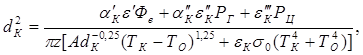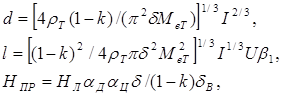 где , - удельное сопротивление и энергетическая светимость вольфрама при температуре Т; k - относительные потери через газ; Нл, Нпр - световые отдачи лампы и прямой нить (в вакууме); , - общие коэффициенты излучения и излучения по световому потоку ТН; I, U - ток лампы и напряжение на ней; - коэффициент, учитывающий уменьшение мощности за счет охлаждающего действия поддержек при I=const (для ЛОН =1,01 - 1,02); - коэффициент, характеризующий экранирующее действие цоколя ( = 1,03 - 1,08); - коэффициент, определяющий потери светового потока ТН из-за охлаждающего действия поддержек, = 1 + (0,004 - 0,008)nд, где nд - количество поддерживающих ТН электродов и крючков; для ЛОН = 1,03 - 1,05.