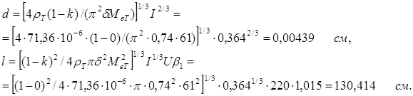 Из существующей номенклатуры вольфрамовой проволоки выбираем диаметр Δdн = 46·10-6 м. Расчетный диаметр Δdн = 44,8·10-6 м.