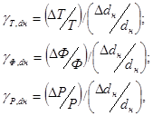 Δ Т, Δ Ф, Δ Рл – определяемое отклонение значений температуры тела накала, светового потока лампы, мощности лампы в следствии отклонения диаметра нити Δdн.