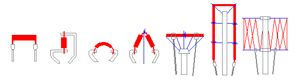 Главной частью любой ЛН является тело накала (1) (рис.1). Нагревание тела накала (ТН) производят пропускание через него электрического тока, что приводит к излучению света. ТН может быть выполнено из нити, спирали, биспирали, триспирали и иметь различные формы и размеры. Для того, чтобы ТН в процессе работы сохраняло исходную форму его фиксируют в пространстве с помощью внутренних звеньев электродов (2) и держателей (3). Необходимо отметить, что при конструировании тела накала важнейшими являются вопросы монтажа на ножке лампы. Выбор конструкции монтажа может повлиять на конструкцию самой спирали, т.е. может потребовать заранее предусмотренных пропусков спирали, называемых «тире». Ниже на рис.2 приведены наиболее распространенные типы монтажа.