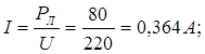Ток лампы найдется из выражения: