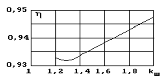 Рис.3. Зависимость h от kШ.