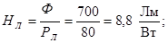 Световая отдача лампы найдется из выражения: