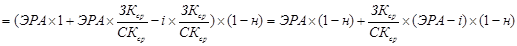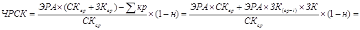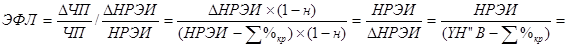 ЭФРз-е = (1 – ставка налога на прибыль) × (экономическая рентабельность активов – средняя расчётная ставка процента за кредит) × заёмный капитал ⁄ собственный капитал,