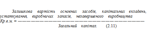 1.Величина власного капіталу (функціонуючий капітал). Характеризує ту частину власного капіталу підприємства, яка є джерелом покриття поточних активів підприємства (тобто активів, які мають період обороту менше ніж один рік). Цей розрахунковий показник залежить як від структури активів, так і від структури джерел коштів. Показник має особливо важливе значення для підприємств. Зростання цього показника в динаміці — позитивна тенденція. Основним і постійним джерелом збільшення власних оборотних коштів є прибуток. Не можна ототожнювати поняття "оборотні кошти" та "власні оборотні кошти". Перший показник характеризує активи підприємства (IIта IIIрозділи активу балансу). Другий — джерела коштів, тобто частину власного капіталу підприємства, яка розглядається як джерело покриття поточних активів.