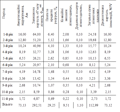 Графік лізингових платежів на весь термін наведено в таблиці 4.5