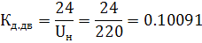 Відповідно до рекомендацій [3] приймаємо Кн=50. Коефіцієнт дільника напруги якоря двигуна визначається з умови одержання сигналу 24У на