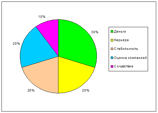 Таким образом, на первые места по важности испытуемыми, имеющими четкие представления о карьере, были вынесены деньги, карьера, стабильность и оценка работы компанией, в то время как в группе испытуемых, имеющих нечеткие представления о карьере, были вынесены такие факторы, как условия труда, оплата, содержание работы и оценка своего труда. Это говорит о том, что для испытуемых, имеющих четкие представления о карьере, в результате высокой конкуренции на рынке труда и жесткого отбора при поступлении на работу гораздо более важно обеспечить свое финансовое благополучие и устойчивость в социальной и организационной среде, а для испытуемых, имеющих нечеткие представления о карьере, наличествует непонимание своих целей и потребностей в работе, результатом чего является низкая удовлетворенность трудом и отличия в трудовой мотивации.