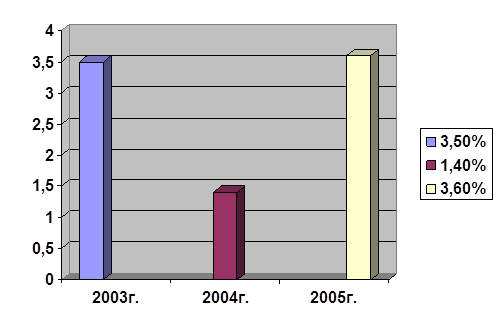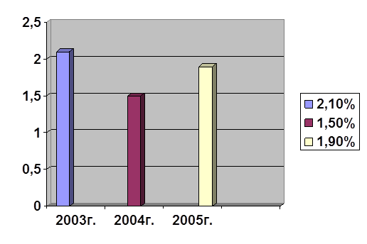 В 2005 году количество реставраций протезов увеличилось( 3,6%), вернувшись к уровню 2003 года, т.к. врачи отделения меньше уделяли внимания представлению информации о правилах эксплуатации съемных протезов. Незначительное число пациентов, имеющих съемные протезы при полной потере зубов, использовали средства для усиления их фиксации во рту, а молодые грызли орехи, кости, обращались менее аккуратно, чем пожилые пациенты, что и привело к увеличению количества поломок.