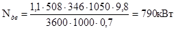 Данных координат точки режима работы насосной установки достаточно, чтобы определить мощность двигателя насоса (кВт):
