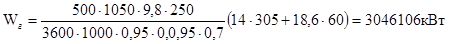 1.9 Расчет расхода электрической энергии и установление КПД водоотливной установки