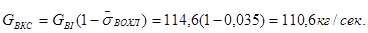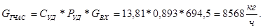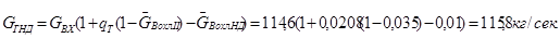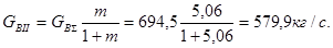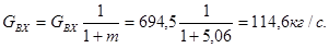 G – массовый расход кг/с.