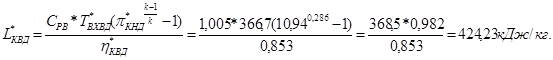 10. Работа сжатия воздуха в компрессоре НД: