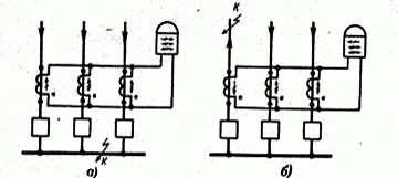 Токовые реле (рис.2) подключаются к соединенным параллельно вторичным обмоткам трансформаторов тока, установленных на каждом присоединении. Коэффициенты трансформации всех трансформаторов тока равны.