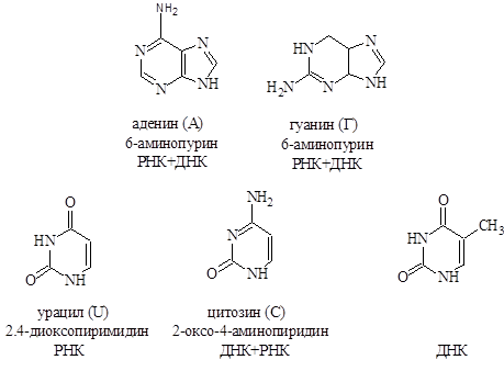 Названия отдельных нуклеотидов часто обозначают сокращенно большими первыми буквами названий соответствующих оснований. Ниже приведены нуклеотиды, входящие в состав нуклеиновых кислот, и даны их условные сокращенные обозначения.