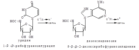 Поэтому первичная структура фрагмента РНК может быть представлена такой записью UAГААСС××××××××Запись структуры ДНК отличается приставкой « g» ( дезокси-);