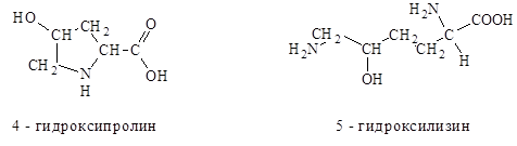 Другие примеры аминокислотной модификации-гидроксипролин и гидроксилизин, которые входят в состав коллагена-основного белка соединительной ткани животных.