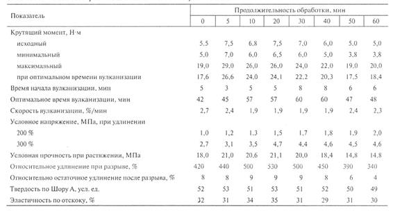 Следует отметить, что для резиновых смесей на основе этих каучуков как скорости вулканизации, так и другие параметры имеют близкие значения. Снижения скорости вулканизации, которое наблюдалось у термомеханически обработанных каучуков (см. табл.1), здесь не происходит.