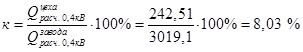 · доля потребления реактивной нагрузки 0,4 кВ кузнечного цеха по отношению ко всему заводу: