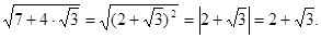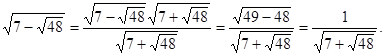 Рішення. Доданок можна розглядати як подвоєний добуток чисел і або чисел і . Число 7 повинне бути дорівнює сумі квадратів цих чисел. Підбором знаходимо, що ця умова виконується для чисел і , тобто .