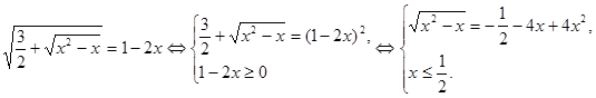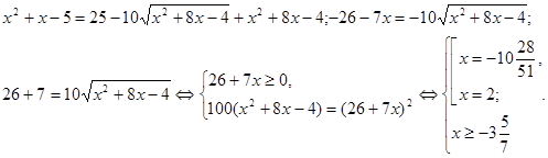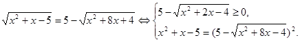 Знову візьмемо рівняння (3) і зведемо обидві його частини у квадрат. Одержимо рівняння: (5), коріннями якого служать як коріння рівняння (3), так і корінь «стороннього» рівняння . Ясно, що рівняння (3) і (5) рівносильні, якщо в «стороннього» рівняння немає кореню.