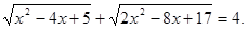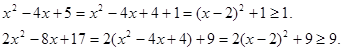 Так як перший доданок лівої частини вихідного рівняння обмежено знизу одиницею, а другий доданок-3, те їхня сума обмежена знизу 4. Тоді ліва частина рівняння стає рівної правої частини рівняння при .