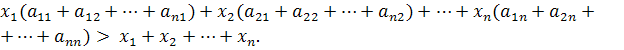 Существует несколько критериев продуктивности матрицы A.Один из них говорит о том, что матрица A продуктивна, если максимум сумм элементов её столбцов не превосходит единицы, причём хотя бы для одного из столбцов сумма элементов строго меньше единицы, т.е. матрица A продуктивна, если для любых