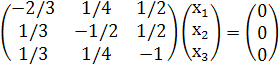 В котором вектор x записан в виде вектор столбца, т.е. задача свелась к отысканию собственного вектора матрицы A, отвечающего собственному значению