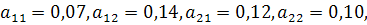 По формуле (2.15) находим коэффициенты прямых затрат: