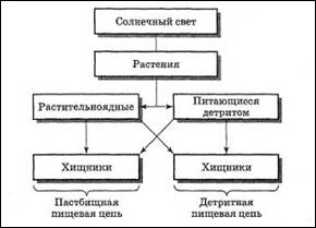 Рис. 2. Схема пастбищной и детритнои пищевых цепей (по Ю. Одуму)